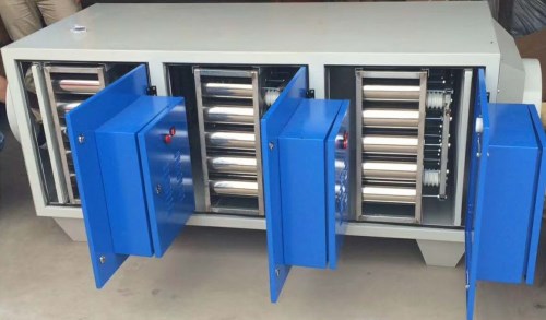 等離子廢氣處理設備:物理作用表現在具有荷電集塵作用。等離子體中的大量電子與顆粒污染物發生非彈性碰撞并粘附其表面從而使其荷電,在電場作用下,顆粒污染物被集塵收集。